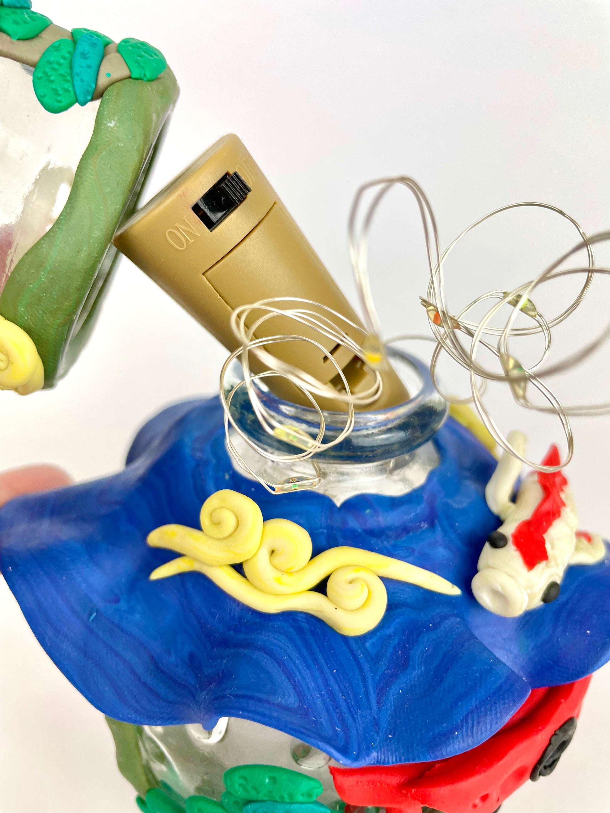 Entièrement modelée à la main en pâte polymère, cette pièce est unique, riche en textures et en détails, parfaite pour les amoureux du folklore nippon et des objets enchantés.